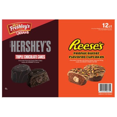 Spotted Mrs Freshley S Deluxe Hershey S Triple Chocolate Cakes And Reese S Peanut Triple Chocolate Cake Peanut Butter Cupcakes Reeses Peanut Butter Cupcakes